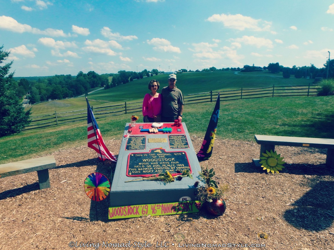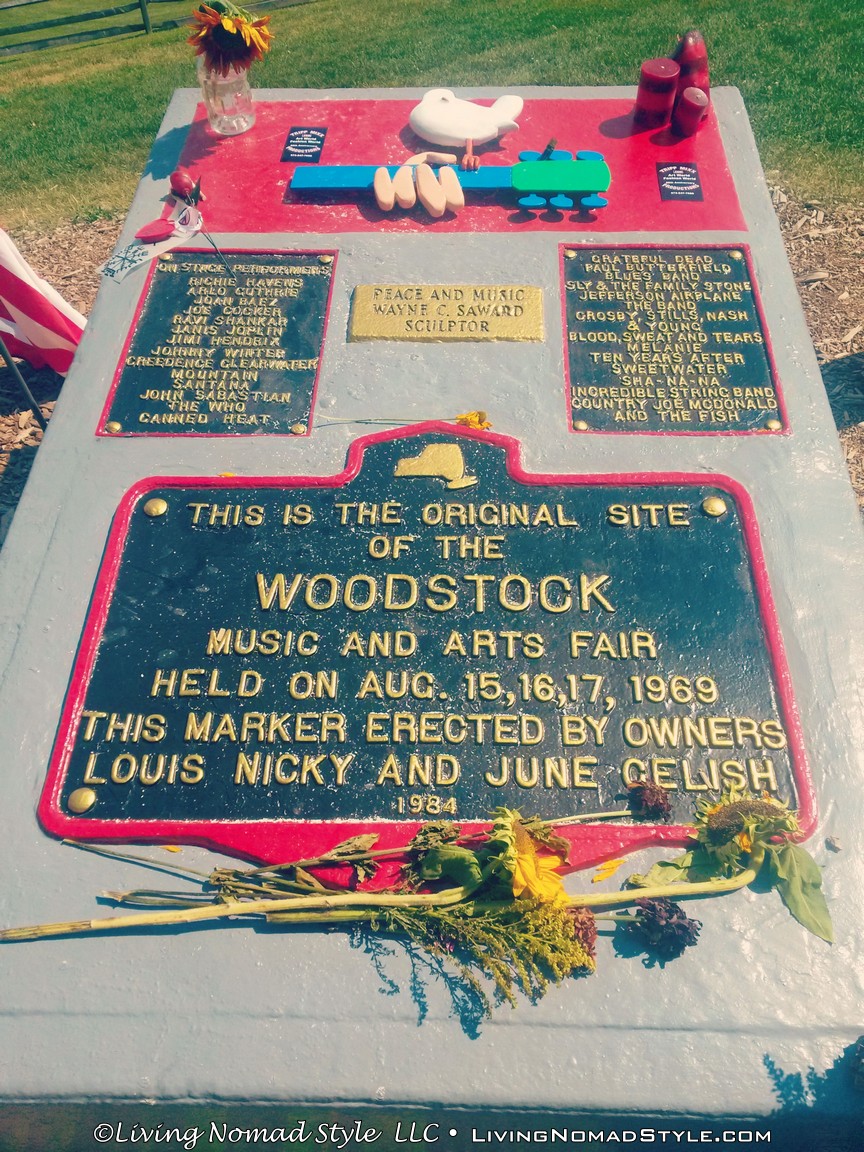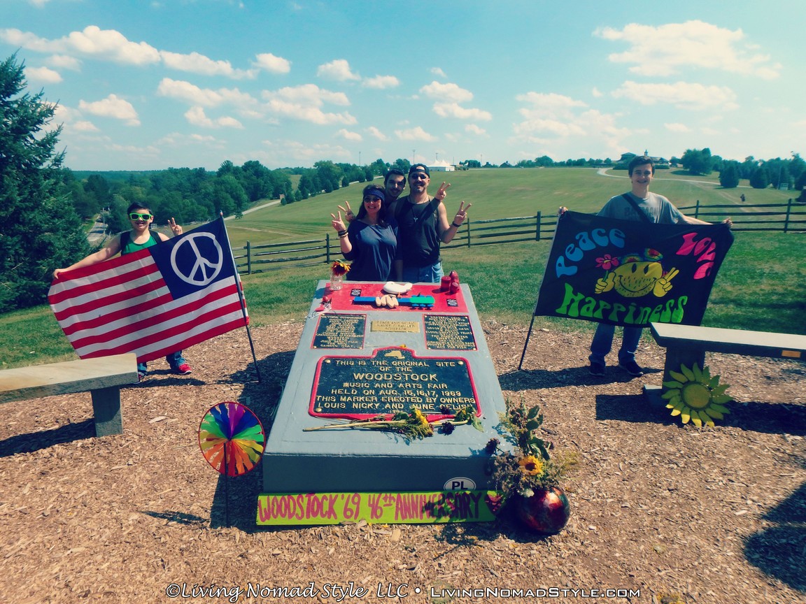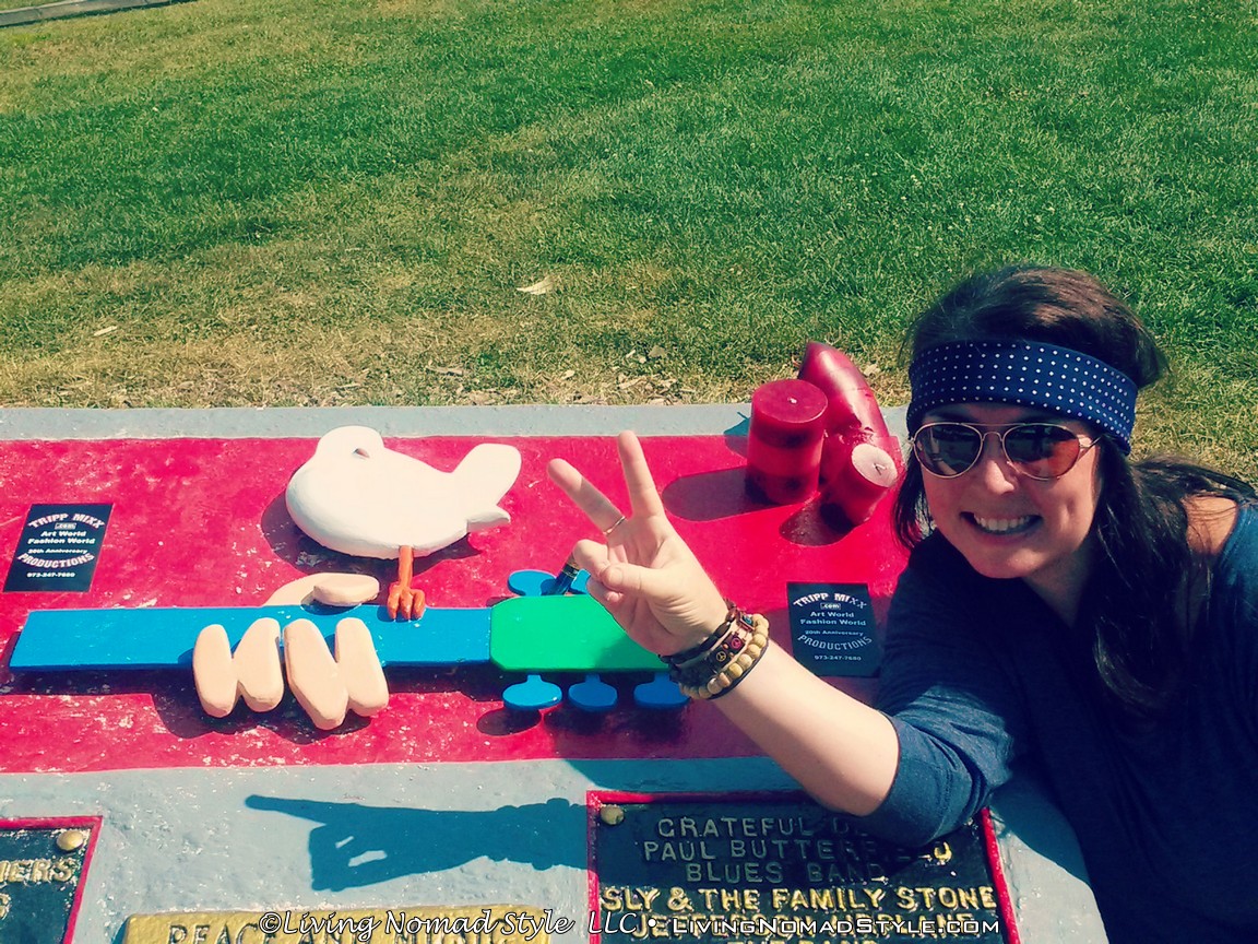 It’s August 16, 1969. Where are you? I, just so happen, to not be born yet. In fact, my parents have not even met each other; they are just young little things themselves. If I could get that darned flux capacitor to work, I would be enjoying the day at Woodstock watching the Grateful Dead, CCR, Janis Joplin, and The Who. Since my time machine is still not quite in working order, I relive Woodstock vicariously through the music. And on August 16, 2015, I got even closer to the experience by visiting the festival site on the Woodstock anniversary. Walking the field where 400,000 people gathered for “three days of peace and music” was a pretty groovy experience. It was fun to have my parents along for the ride; three generations of hippies. Okay, so really, I’m probably the only one of us who is in the realm of hippiehood, but it was still fun to all go together. In fact, we all figured out our hippie names, and used them for the day. Hello, my name is Sunflower.