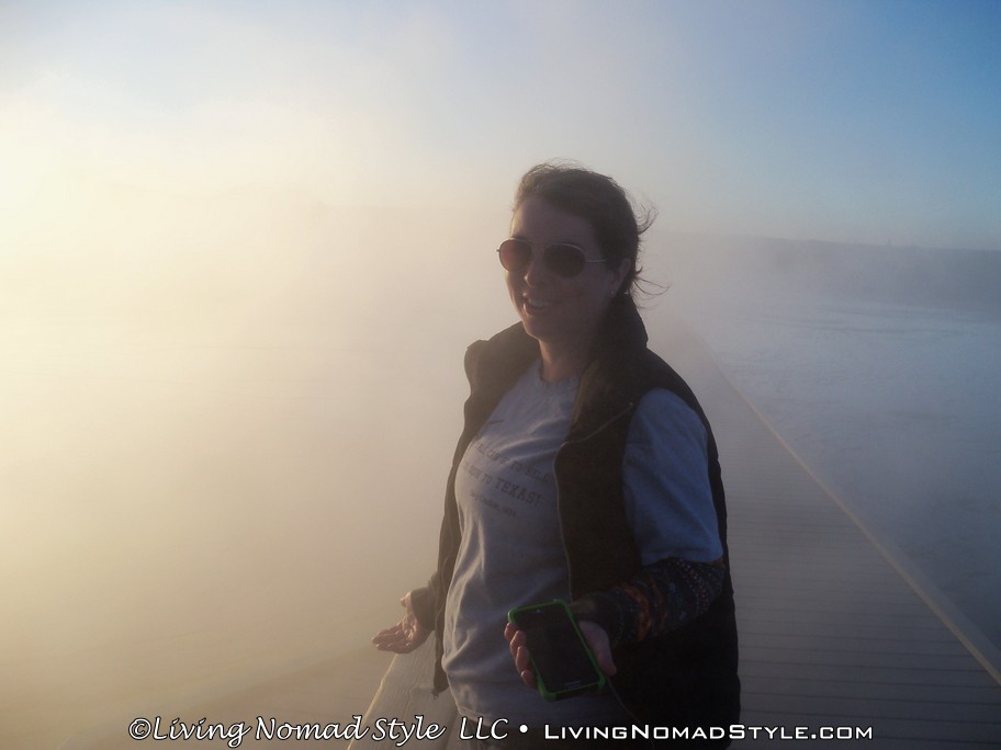 We wound our way up to the spring and encountered a variety of formations along the way. The Grand Prismatic Spring was beautiful to see. Although, it was a little windy and it was causing the steam to blow across where we were and make it seem like we were in a pea soup fog. One thing I can definitely say, the pictures taken by the park from a helicopter (top down view) is a much better vantage point than being at ground level with it. Still, it is a sight to behold.
