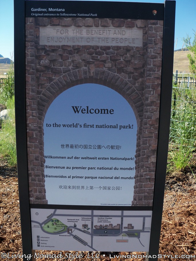 We entered Yellowstone from Gardiner, Montana. This a grand entrance with a stone archway. One of the signs says that Yellowstone was the first national park in the world. Can you imagine that? As we continued on we came to where you had to pay, unless you have a National Park Pass; which we had with us. If you plan on visiting a lot of national parks, it makes sense because it is like $80 for the year as opposed to $15 to $30 per park per time.