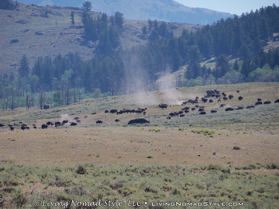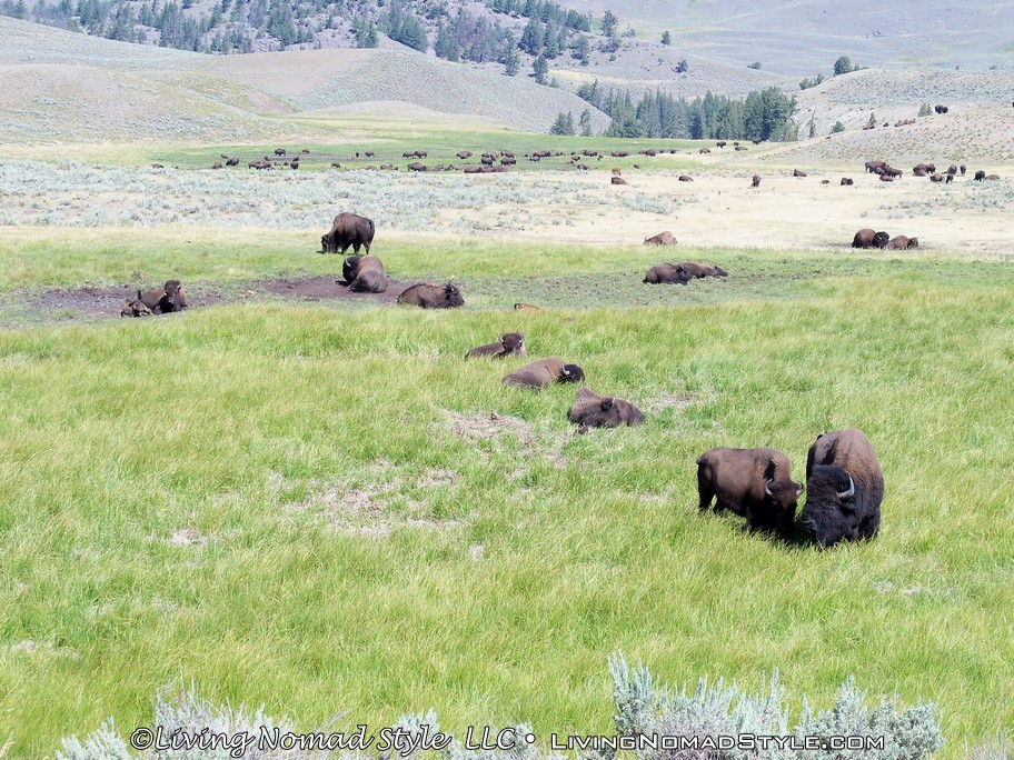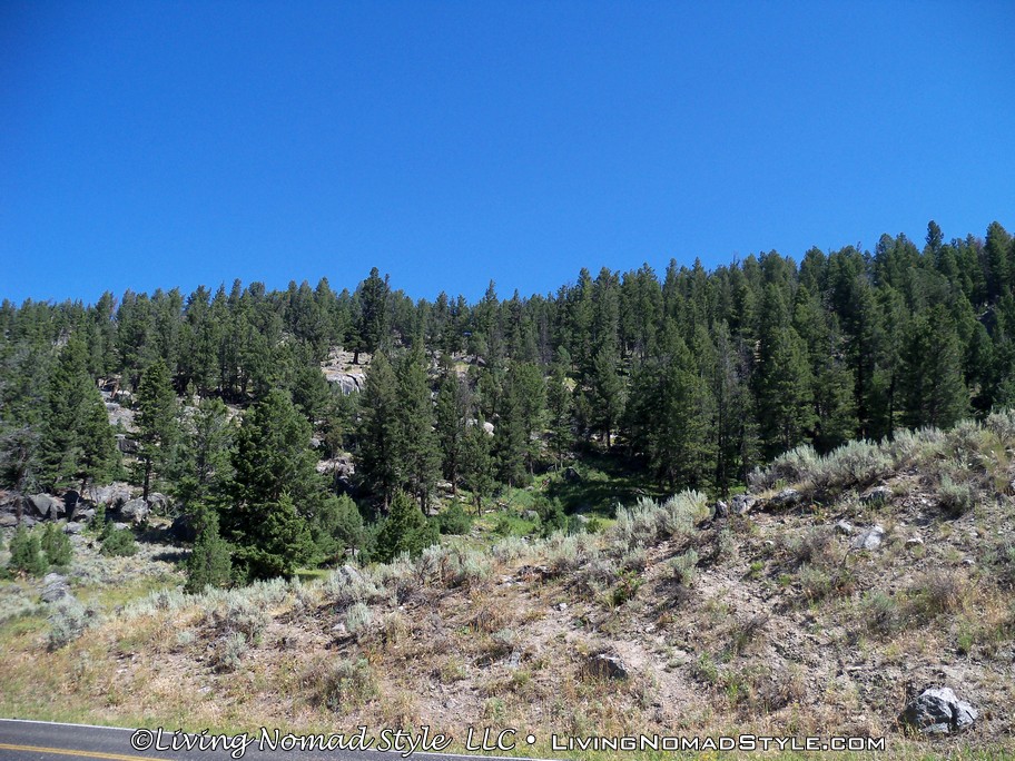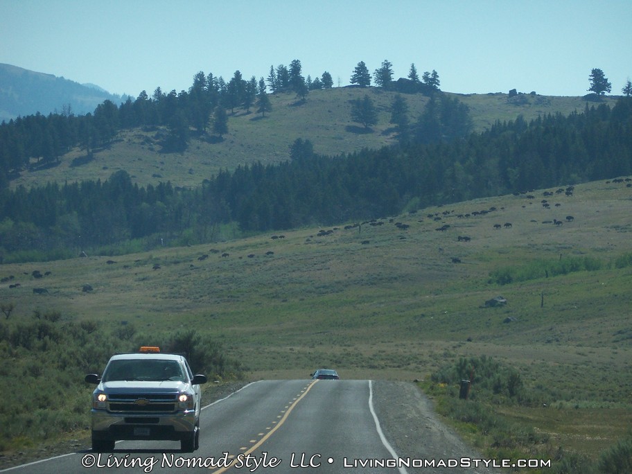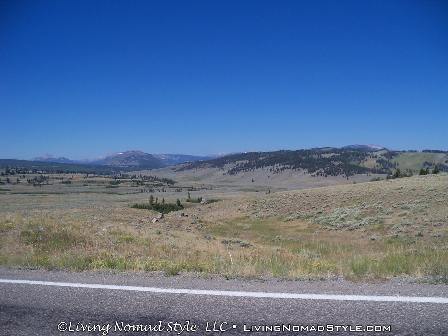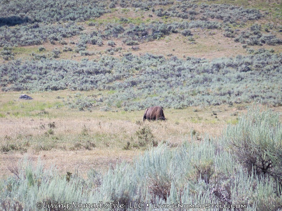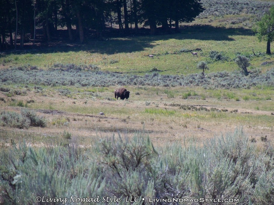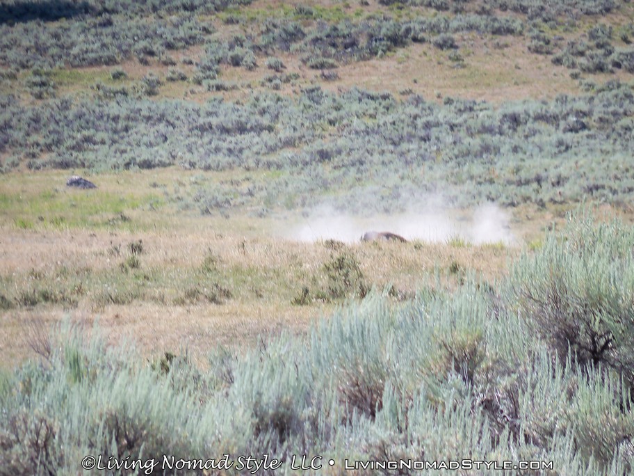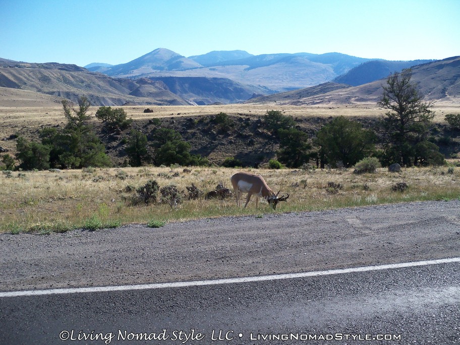 Following past the payment point there was a sign that says, “Animals Are Dangerous. Never Approach Or Feed.” And it also tells you about fire danger in case you smoke or plan on starting a camp fire. After this sign, you are off into the park. We had not even gone a mile before we saw a prong horn. We were anxious to get to the Lamar River Valley where we were told that you could possibly see wolves. Ethan, our Middle Nomad Son, is fond of wolves.