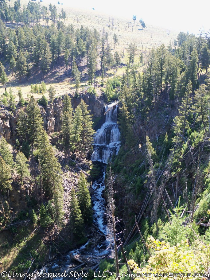After seeing the prong horn, we continued on but the animals were scarce. We came across a nice waterfall, which we pulled over to take a look at and enjoy. There are a couple of them along the way. We came to Tower Junction, where you will find the Roosevelt Lodge and some other amenities. We did not stop because we wanted to get to the Lamar Valley.